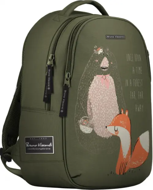 Рюкзак с авторским дизайном, с использованием сложнейших современных технологий нанесения на ткань. Ткань водонепроницаемая, морозостойкая, с повышенной износостойкостью, грязеотталкивающая. Двунаправленные-реверсивные надежные 8 мм молнии с 5 см пуллером на замках, что позволяет легко открывать и закрывать рюкзак. Эргономичная спинка, комфортная при длительном использовании, вентилируемая, с анатомическими подушечками. Регулируемые лямки анатомической формы и ручка с усиленным креплением готовы к любым нагрузкам. Износостойкая фирменная подкладка BRUNO VISCONTI, тщательно подобранная и сочетающаяся с дизайном и цветом рюкзака. Рюкзак имеет два основных отделения: первое отделение содержит органайзер с молнией и карман-сеточку, второе отделение состоит из трех частей с двумя разделителями с фиксирующим ремнем и дополнено карманом на молнии для карточки. Рюкзак снабжён четырьмя светоотражающими элементами. Усиленное дно рюкзака оснащено резиновыми ножками, защищающими от загрязнения и влаги. Размеры : 31х42х14 см, вес - 730 г, объём - 18 л. Материал: 100% полиэстер.