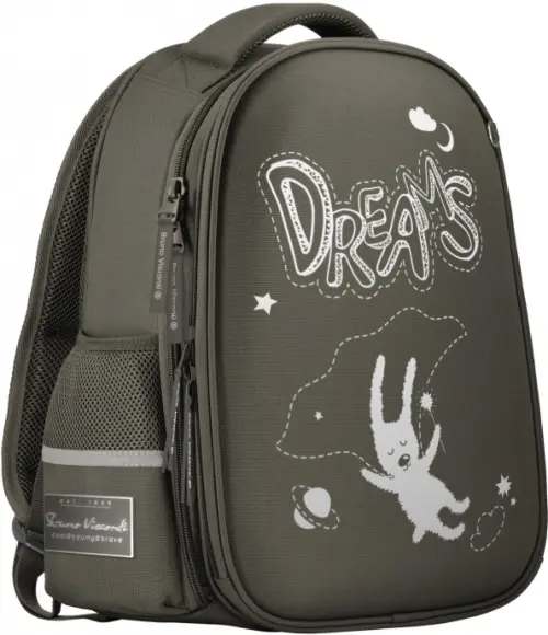 Рюкзак имеет два основных отделения: первое отделение содержит органайзер с молнией и карман-сеточку, второе отделение состоит из трех частей с двумя разделителями с фиксирующим ремнем и дополнено карманом на молнии для карточки. Рюкзак снабжён четырьмя светоотражающими элементами.