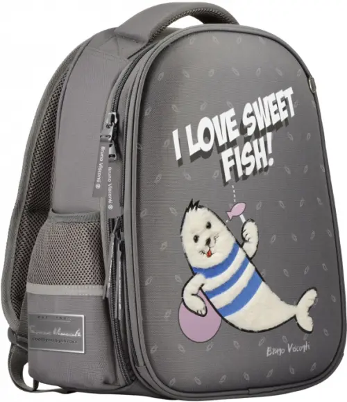 Рюкзак с авторским дизайном, с использованием сложнейших современных технологий нанесения на ткань. Ткань водонепроницаемая, морозостойкая, с повышенной износостойкостью, грязеотталкивающая. Двунаправленные-реверсивные надежные 8-мм молнии с 5-см пуллером на замках, что позволяет легко открывать и закрывать рюкзак. Эргономичная спинка, комфортная при длительном использовании, вентилируемая, с анатомическими подушечками. Регулируемые лямки анатомической формы и ручка с усиленным креплением готовы к любым нагрузкам. Износостойкая фирменная подкладка Bruno Visconti, тщательно подобранная и сочетающаяся с дизайном и цветом рюкзака. Рюкзак имеет два основных отделения: первое отделение содержит органайзер с молнией и карман-сеточку, второе отделение состоит из трех частей с двумя разделителями с фиксирующим ремнем и дополнено карманом на молнии для карточки. Рюкзак снабжён четырьмя светоотражающими элементами. Усиленное дно рюкзака оснащено резиновыми ножками, защищающими от загрязнения и влаги.