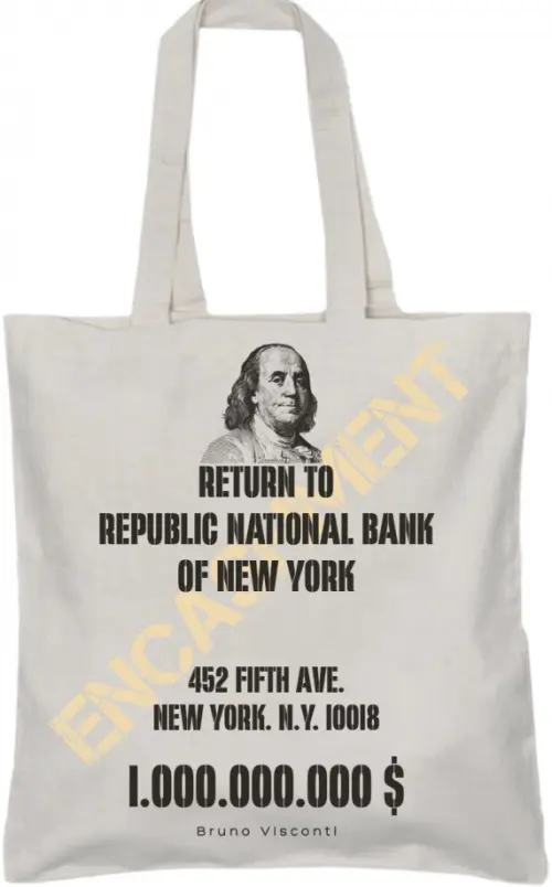 Согласно надписи на лицевой стороне, "мешок" принадлежит Республиканскому Национальному банку Нью-Йорка.