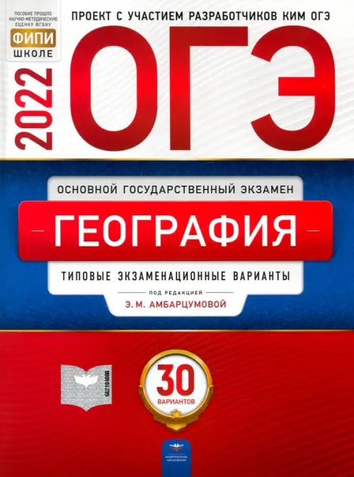 Пособие прошло научно-методическую оценку ФГБНУ "ФИПИ" Серия подготовлена разработчиками контрольных измерительных материалов (КИМ) основного государственного экзамена. В сборнике представлены: - 30 типовых экзаменационных вариантов, составленных в соответствии с проектом демоверсии КИМ ОГЭ по географии 2022 года; - инструкция по выполнению экзаменационной работы; - ответы ко всем заданиям; - критерии оценивания. Выполнение заданий типовых экзаменационных вариантов предоставляет обучающимся возможность самостоятельно подготовиться к государственной итоговой аттестации в 9 классе в форме ОГЭ, а также объективно оценить уровень своей подготовки к экзамену. Учителя могут использовать типовые экзаменационные варианты для организации контроля результатов освоения школьниками образовательных программ основного общего образования и интенсивной подготовки обучающихся к ОГЭ.