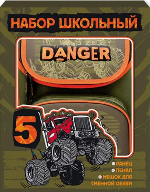 Набор школьный "3 в 1" в подарочной картонной коробке. В наборе: ранец, мешок для обуви, пенал без наполнения. Размеры: Ранец: 35x26x15 см. Пенал: 20x13.3x3,5 см. Мешок для обуви: 36x48 см. Материал: полиэстер Цвет: хаки Количество отделений: 1 Количество карманов: 3 Тип застежки: молния для ранца и пенала, шнурок для мешка. Тип спинки: формоустойчивая жёсткая спинка из сетчатой ткани и поролона Тип дна: уплотнённое дно Особенности: светоотражающие элементы на ранце и мешке, уплотнённые лямки ранца S-образной формы, регулируемые по длине, пластиковая ручка + ручка-петля на ранце. Сделано в Китае.