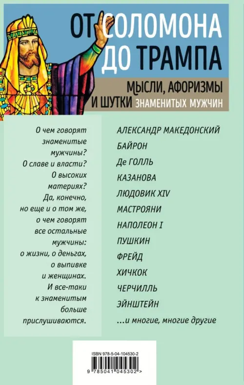 Если вы обнаружили ошибку в описании товара «Мысли, афоризмы и шутки знаменитых мужчин», то выделите её мышкой и нажмите Ctrl+Enter. Спасибо, что помогаете нам стать лучше!