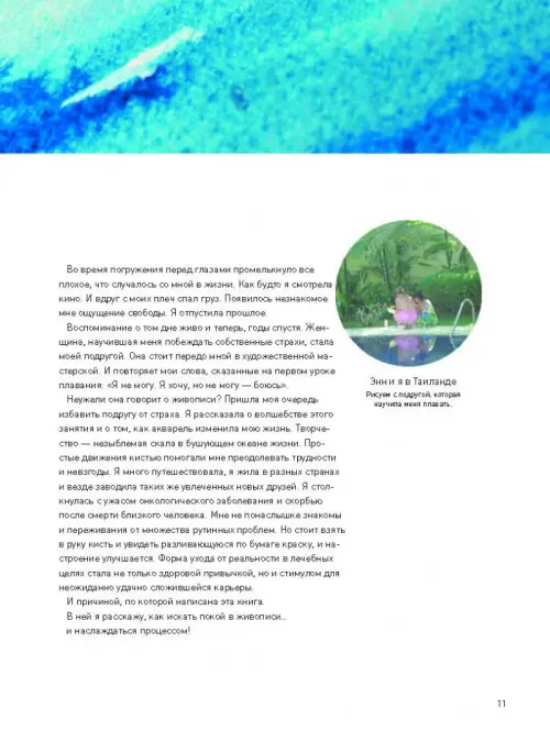 О книге Медитативная, умиротворяющая и успокаивающая акварельная живопись дает ощущение контроля и повышает самооценку любому без необходимости ставить цель, а процесс сам по себе приносит радость. В этой книге продемонстрировано, как обрести покой и обогатить взгляд на мир посредством движений кистью по бумаге. Вместе с профессиональной художницей Джин Хейнс вы отправитесь в красочное путешествие. Она покажет вам, как свести на нет все свои тревоги нежными и плавными мазками акварелью на бумаге. Джин Хэйнс предлагает осторожный, не пугающий подход к акварельной живописи, очень свежий. Она утверждает, что взрослые, желающие научиться рисовать, слишком озабочены результатом, созданием чего-то достойного, чтобы повесить в раму, и не оправдав собственных надежд, сдаются. Или еще хуже - не получают никакого удовольствия, и бросают еще раньше. Автор же предлагает идею о том, что просто игра с цветом на бумаге и есть результат, и что бы ни получилось в итоге, это вторично по отношению к получению удовольствия от процесса. Все, что нужно для упражнений по этой книге - несколько тюбиков краски, две кисти, бумага и вода. Автор приводит очень простые, доступные примеры того, как интересно просто рисовать кистью с краской на белой бумаге, и рассказывает, что это может успокоить, принести удовольствие, и что процесс важнее результата. Для кого эта книга Для всех, кто влюблен в акварель. Об авторе Член "Общества женщин-художников", международно признанный акварелист Джин Хейнс известна своей приверженностью к любимому материалу. Она жила в разных странах и много путешествовала, что дало ей возможность совершенствовать свое мастерство под влиянием художников из Азии, Среднего Востока и Европы. Джин осваивала работу кистью во время проживания в Китае, и это заметно повлияло на ее стиль. Позже, сотрудничая с художниками из Индии и Пакистана, вдохновилась их яркой цветовой гаммой. Картины Джин можно увидеть в домашних интерьерах по всему миру, а в 2009 году на ежегодной выставке "Общества женщин-художников" она получила награду Энтони Дж. Лестера, и ее работы сравнивали с творчеством Джозефа Кроухоллса из известной художественной группы "Глазго бойз". Она регулярно пишет статьи в художественные периодические издания и выставляется во многих галереях. Ее невероятно успешные мастер-классы регулярно проводятся в Великобритании, а билеты на автограф-сессии и мастер-классы в Австралии на 2014 год уже распроданы. В 2015 году она отправится в Калифорнию, Нью-Йорк и Сент-Луис для проведения мастер-классов и рекламы новой книги "Мир Акварели". Джин живет в Крукэм Виллидж, в Гэмпшире.