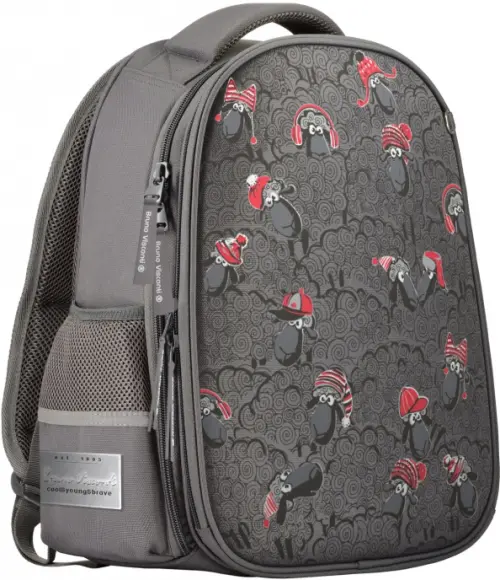 Рюкзак с авторским дизайном, с использованием сложнейших современных технологий нанесения на ткань. Ткань водонепроницаемая, морозостойкая, с повышенной износостойкостью, грязеотталкивающая. Двунаправленные-реверсивные надежные 8-мм молнии с 5-см пуллером на замках, что позволяет легко открывать и закрывать рюкзак. Эргономичная спинка, комфортная при длительном использовании, вентилируемая, с анатомическими подушечками. Регулируемые лямки анатомической формы и ручка с усиленным креплением готовы к любым нагрузкам. Износостойкая фирменная подкладка Bruno Visconti, тщательно подобранная и сочетающаяся с дизайном и цветом рюкзака. Рюкзак имеет два основных отделения: первое отделение содержит органайзер с молнией и карман-сеточку, второе отделение состоит из трех частей с двумя разделителями с фиксирующим ремнем и дополнено карманом на молнии для карточки. Рюкзак снабжён четырьмя светоотражающими элементами. Усиленное дно рюкзака оснащено резиновыми ножками, защищающими от загрязнения и влаги.