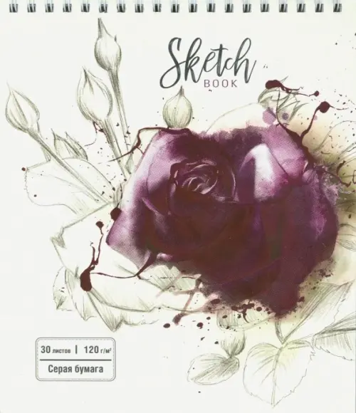 Скетчбук на гребене Роза на белом, 30 листов, А5, серая бумага