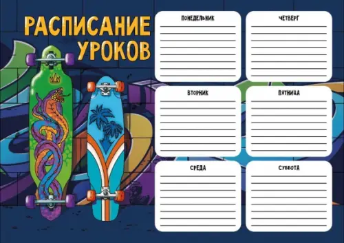 Если вы обнаружили ошибку в описании товара «Расписание уроков Два лонгборда, А4», то выделите её мышкой и нажмите Ctrl+Enter. Спасибо, что помогаете нам стать лучше!