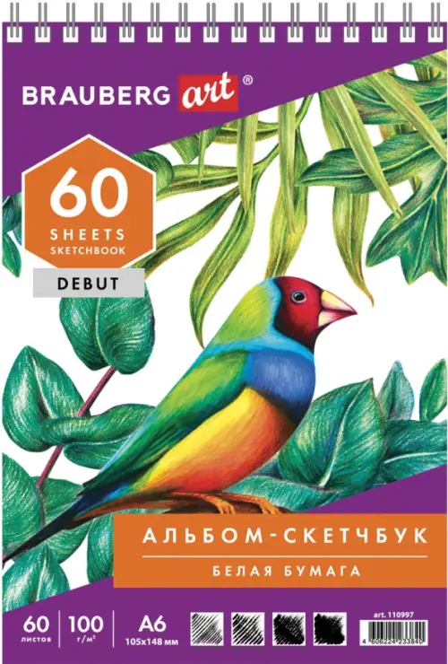 Скетчбук А6, 60 листов, 100г/м2 (110997)