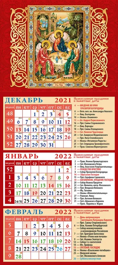 Календарь квартальный на магните на 2022 год "Святая Троица" (34201)