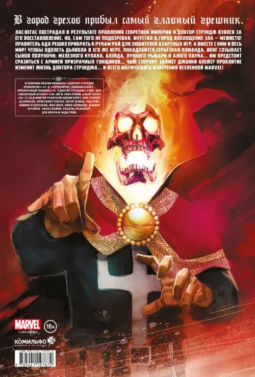 В сборник войдут следующие выпуски: все 4 выпуска лимитки "Проклятие", выпуски #386-389 серии "Доктор Стрендж" 2017 года, "Джонни Блейз: Призрачный гонщик" #1, выпуски #78-80 "Железного кулака" и выпуски #15-17 "Алого паука".