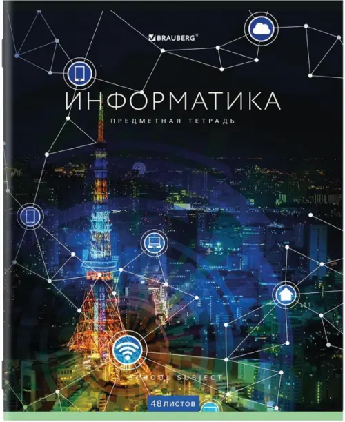 Тетрадь 48 листов "Информатика", формат А5 (165х202 мм). Изготовлена из высококачественной офсетной бумаги плотностью 60 г/м2, белизной 100%. Листы соединены скобами.