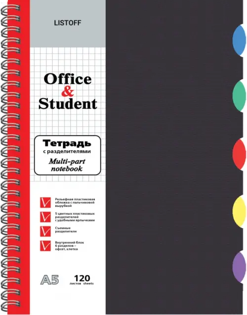 Тетрадь с разделителями. Черная, А5, 120 листов, клетка
