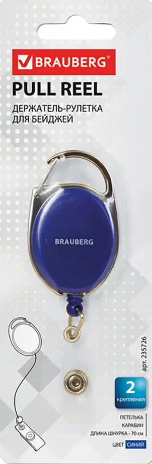 Держатель-рулетка BRAUBERG предназначена для крепления бейджей, магнитных карт, пропусков, ключей и мелкого инструмента. Рулетка с карабином подходит для ношения на поясе.