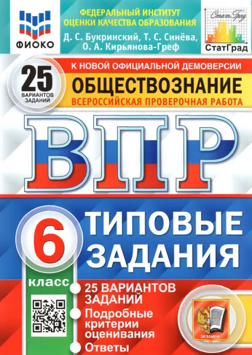 Если вы обнаружили ошибку в описании товара «ВПР ФИОКО. Обществознание. 6 класс. Типовые задания. 25 вариантов» (авторы: Кирьянова-Греф Ольга Александровна, Синева Татьяна Сергеевна, Букринский Даниил Сергеевич), то выделите её мышкой и нажмите Ctrl+Enter. Спасибо, что помогаете нам стать лучше!