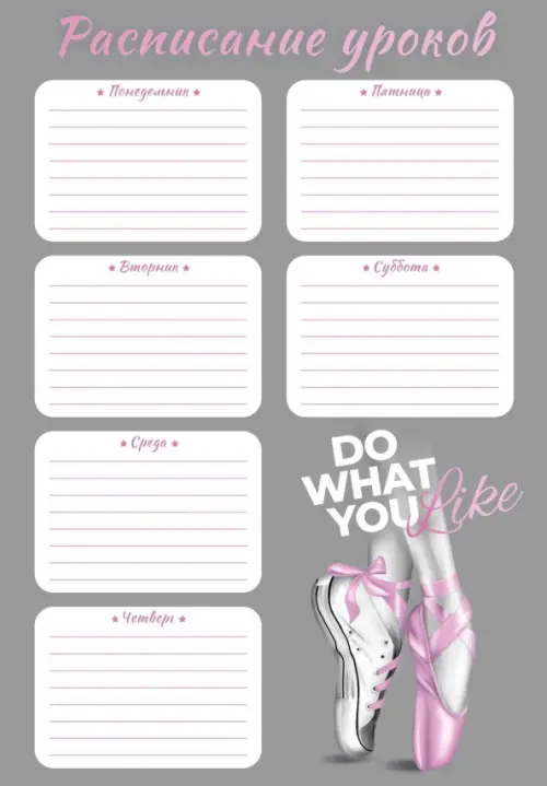 Расписание уроков Будь разной, А4