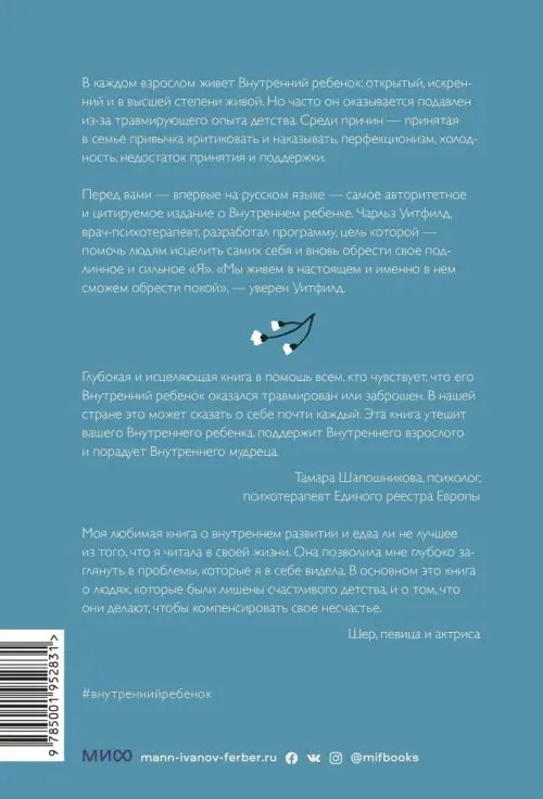 Врач и психотерапевт Чарльз Уитфилд первым написал всеобъемлющую, систематизированную и помогающую книгу о явлении Внутреннего ребенка. Это современная классика психологии, которая сегодня столь же свежа и полезна, что и в момент первого издания.