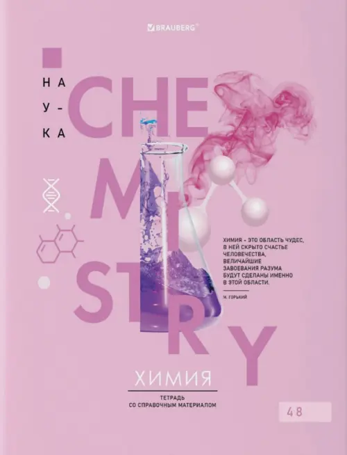 Тетрадь 48 листов "Химия", формат А5 (165х202 мм). Изготовлена из высококачественной офсетной бумаги плотностью 60 г/м2, белизной 100%. Листы соединены скобами.