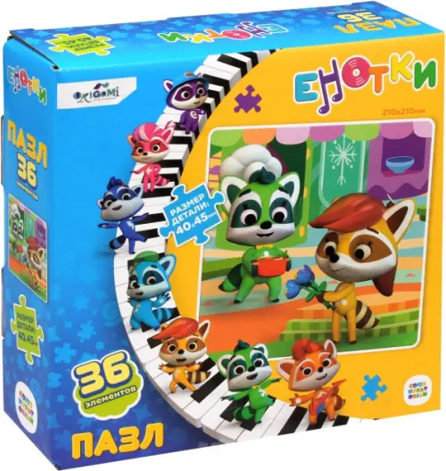 Пазл 36 элементов, основанный на любимых сюжетах мультфильма "Енотки" понравится любому ребенку, а сборка яркой картинки принесет радость не только малышам, но и их родителям. Соберите всю коллекцию новых пазлов!