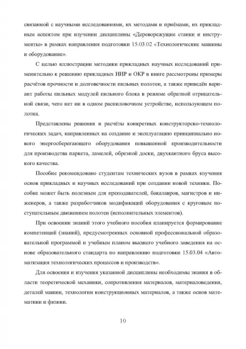 Для студентов технических вузов направления подготовки 35.03.02 "Технология лесозаготовительных и деревоперерабатывающих производств". Может быть полезно для преподавателей и инженеров, а также разработчиков оборудования аналогичного функционального назначения с круговым поступательным движением полотен.
