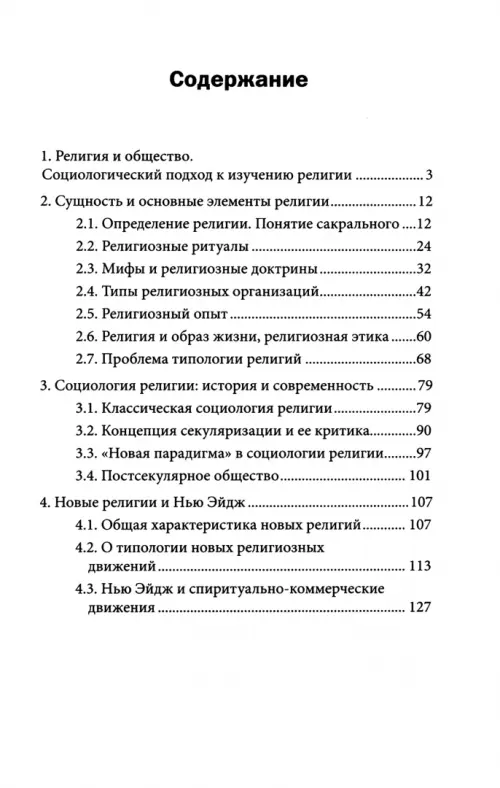 В учебном пособии рассматриваются основные социологические теории религии, религия как социальный феномен, основные элементы и функции религии, взаимодействие религии с другими социальными институтами, анализируются историческая динамика религии, изменение функций и форм организации религии в процессе модернизации, религиозная реакция на секуляризацию, специфика процесса секуляризации в различных обществах, критика концепции секуляризации. Также рассматриваются феномен новых религий, обострение религиозных конфликтов, изменения религиозности на рубеже XX-XXI веков, феномен постсекулярного общества.