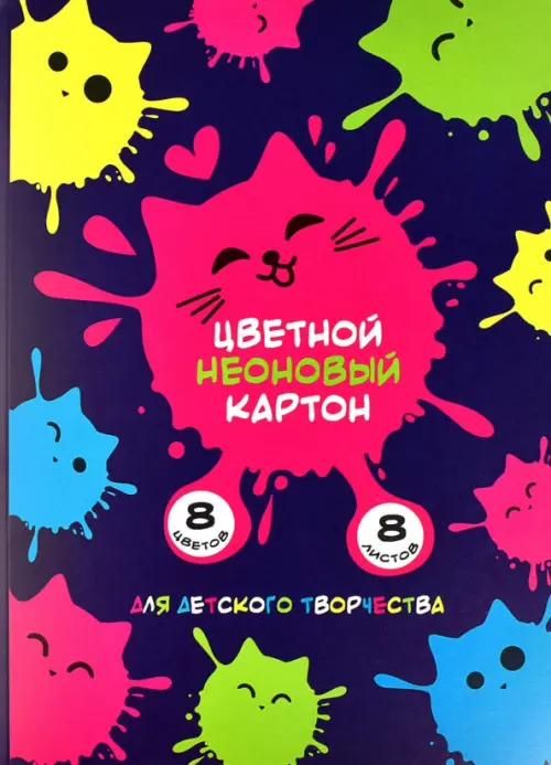 Картон цветной неоновый Котокляксы, 8 листов, 8 цветов