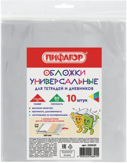 Прозрачные обложки ПИФАГОР предохраняют тетради и дневники от внешних воздействий, увеличивая срок их службы и сохраняя прекрасный внешний вид.