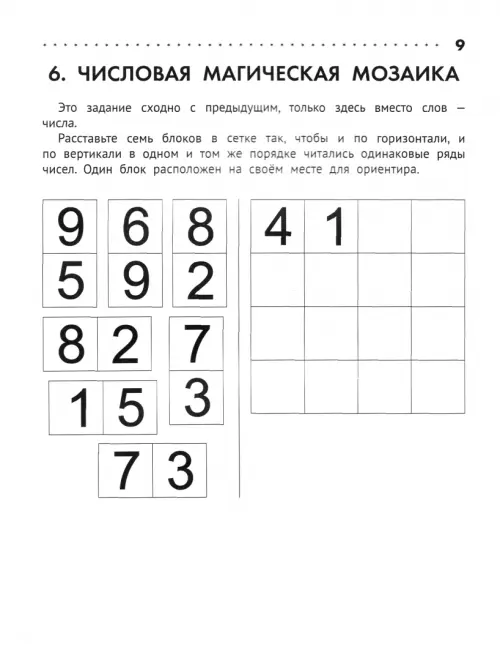 Числовые задания помогут быстрее считать на уроках математики. А словесные задачи разовьют память и сообразительность и помогут ещё лучше усвоить школьную программу по чтению и литературе.