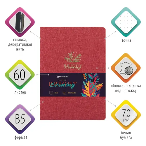 Практичная тетрадь BRAUBERG BRIGHT для учебы и работы. Обложка тетради изготовлена из высококачественного и износоустойчивого материала "Экокожа".