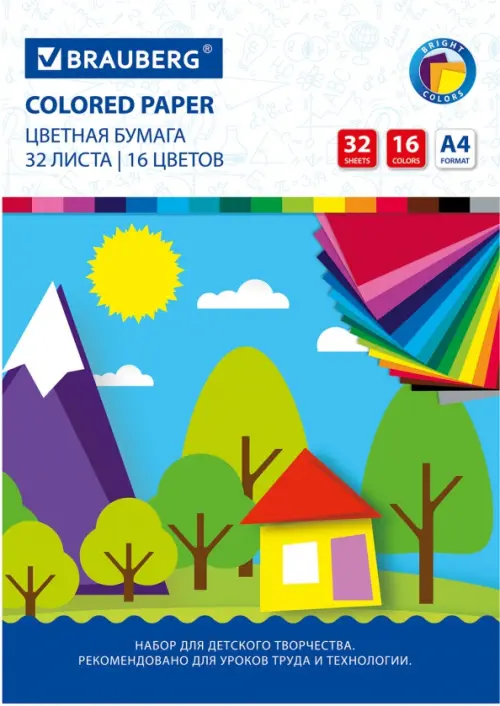 Цветная бумага BRAUBERG предназначена для детского творчества и хобби, начиная с трехлетнего возраста, а также способствует развитию мелкой моторики и фантазии ребенка. Используется не только дома, но и на занятиях в детских садах и школах.