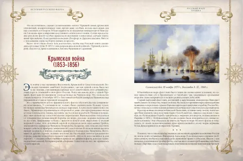 В книгу "История русского флота" вошли уникальные тексты по истории российского флота с древнейших времен до 1917 года. Это труды выдающихся военно-морских историков: Феодосия Веселаго, Евгения Аренса, Михаила Петрова, Алексея Будберга. Издание повествует историю мореходства русских с времен Рюрика до основания русского флота Петром I, знаменитых морских сражений 18-19-го столетий, русско-японской войне 1904-1905 годов, и о нашем флоте в Первой мировой войне. Книга красочно иллюстрирована произведениями классической живописи, портретами флотоводцев, старинными рисунками и фотографиями самых знаменитых кораблей Российского императорского флота.