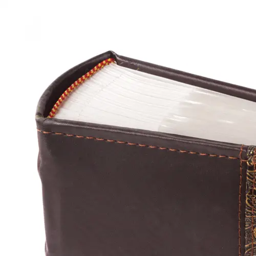 Обложка фотоальбома в холодных тонах скомбинирована из эффектных материалов: под гладкую и фактурную кожу. Рельефный корешок и бежевый внутренний блок на 300 листов придутся по душе искателям новизны.