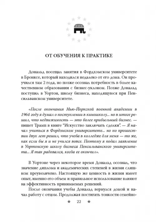 «Как правило, самый простой подход оказывается самым эффективным», — говорит легендарный бизнесмен-миллиардер и провокатор Дональд Трамп. Вырос новый президент Соединенных Штатов Америки в многодетной семье эмигрантов, учился в военной школе-интернате и уже с тех пор проявлял незаурядные лидерские качества. Яркая, эпатажная личность — он с нуля построил свою бизнес-империю, стал известен во всем мире. Был женат на знаменитых и успешных женщинах, воспитал пять детей в трех браках. Но как же он всего добился? Было ли это действительно для него так уж просто? И главное — о чем, все же, предпочитает молчать Дональд Трамп? Полная и откровенная биография 45-ого президента США написана молодым и талантливым публицистом, специалистом-аналитиком Александром Немировым. Специально для Вас автор изучил все возможные англоязычные и русские источники; просмотрел все официальные интервью и записи неофициальных встреч. Прочтите книгу и откройте для себя всю правду о Дональде Джоне Трампе!