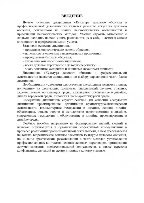 Пособие содержит теоретический материал, методические указания по изучению тем рабочей программы дисциплины ?Культура делового общения в профессиональной деятельности? (с рекомендуемой к изучению учебной и научной литературой), а также вопросы самоконтроля. Цель издания — развитие искусства делового общения, основанного на знании психологических особенностей и применении психологических методов, облегчить им освоение соответствующей дисциплины.