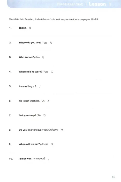Each lesson contains a number of practical exercises which help students develop the skills necessary to use the basic structures of the Russian language.
