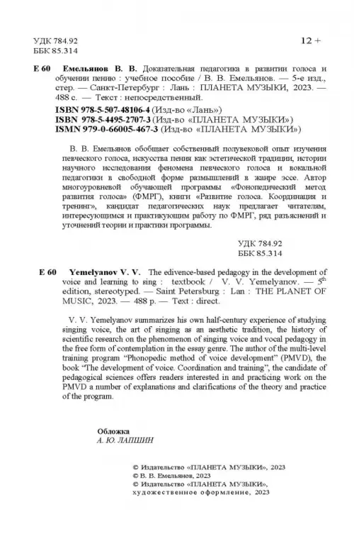 Если вы обнаружили ошибку в описании товара «Доказательная педагогика в развитии голоса и обучении пению. Учебное пособие» (авторы: Емельянов Виктор Вадимович), то выделите её мышкой и нажмите Ctrl+Enter. Спасибо, что помогаете нам стать лучше!