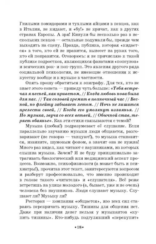 В.В. Емельянов обобщает собственный полувековой опыт изучения певческого голоса, искусства пения как эстетической традиции, истории научного исследования феномена певческого голоса и вокальной педагогики в свободной форме размышлений в жанре эссе.