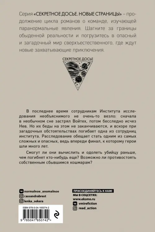 Но их беды на этом не заканчиваются, и вскоре при загадочных обстоятельствах погибает одна из сотрудниц Института. Расследование обещает стать одним из самых сложных и опасных, ведь впереди финал, к которому герои шли много лет.