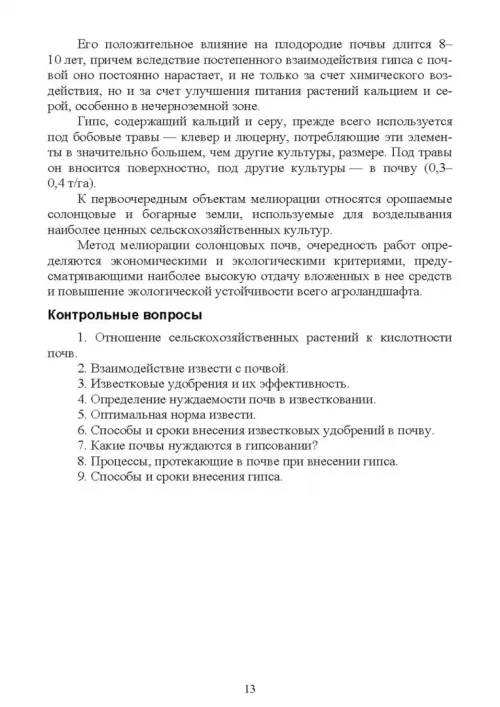 Изложены химическая мелиорация почв, роль азота, фосфора, калия и органического вещества в земледелии и их динамика, эффективность удобрений и принципы их применения, управление продукционным процессом зерновых колосовых культур
