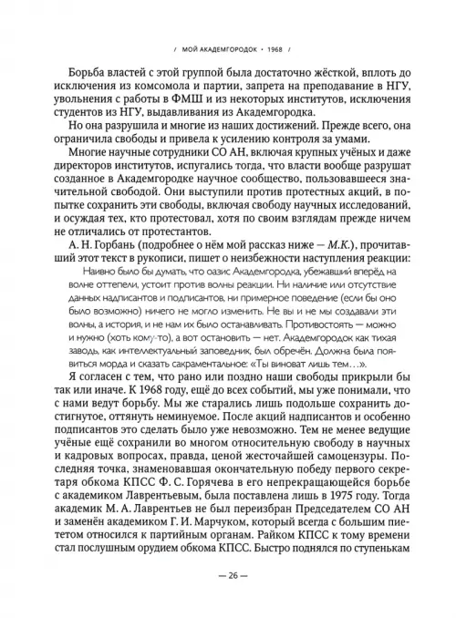 Разносторонне талантливый человек Михаил Качан написал 21-томную эпопею «Потомку о моей жизни». Первые четыре тома охватывают его детство и юность, а остальные семнадцать – увлекательная и детальная история новосибирского Академгородка с 1959 по 1968 год. Сокращенный вариант этой эпопеи представлен двухтомником Михаила Качана «Мой Академгородок». Второй том посвящен событиям 1968-го года. Предназначен для широкого круга читателей.