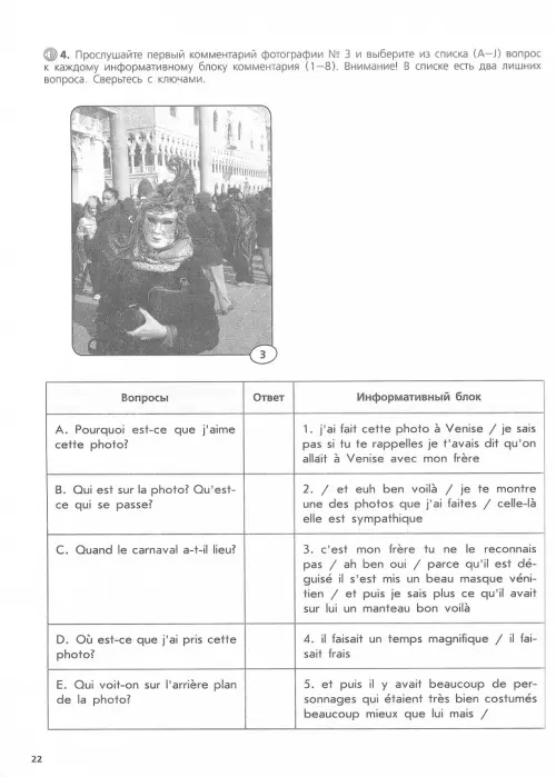 Пособие сопровождается аудиоприложением, размещённым в электронном каталоге издательства "Просвещение". В него вошли записи тренировочных упражнений и образцов ответов к каждому из четырёх разделов устной части экзамена.