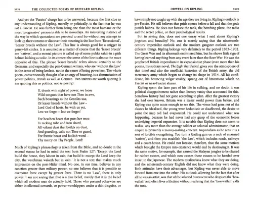 Это издание перепечатывает нелицеприятный отзыв Джорджа Оруэлла о стихах Киплинга, впервые опубликованный в 1942 году и обычно рассматриваемый как один из наиболее важных вкладов в критическое обсуждение Киплинга.