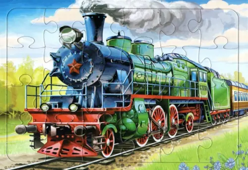 Замечательный пазл от издательства "Аделаида" для самых маленьких. Изображен паровоз очень реалистично, цвета естественные. Всего в пазле 24 элемента. Хорошая сложность для начинающих. Качество картона нормальное, выдержит несколько сборок, не расслаивается. Поставляется на подложке. Цена в "МАЙШОП", что называется по карману. Р...
