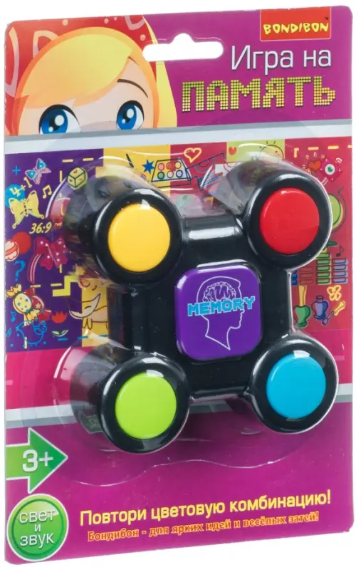 Следите за тем, в каком порядке загораются кнопки, а затем правильно повторите последовательность загоравшихся цветов! Отличная игра, тренирующая память. В комплекте 2 батарейки АА.
