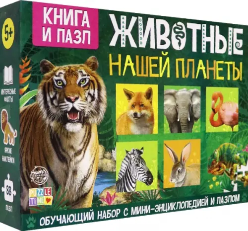 Обучающий набор Животные нашей планеты, мини-энциклопедия и пазл, 88 элементов