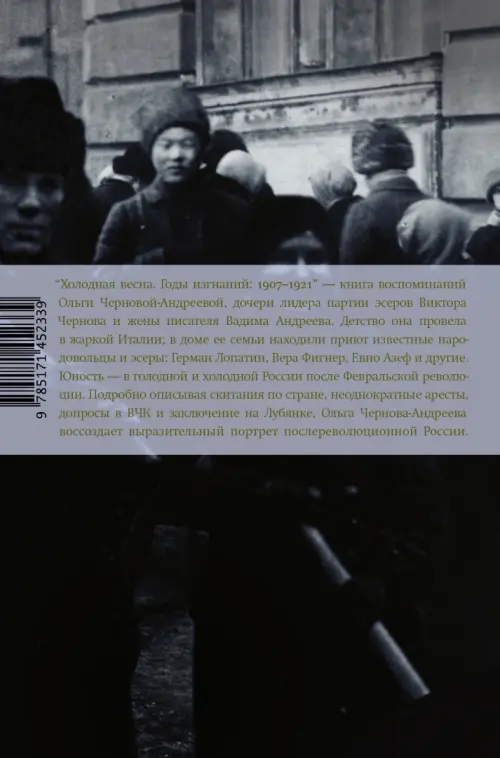 “Холодная весна. Годы изгнаний: 1907–1921” — книга воспоминаний Ольги Черновой-Андреевой, дочери лидера партии эсеров Виктора Чернова и жены писателя Вадима Андреева.