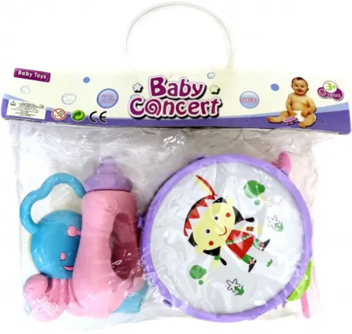 Набор погремушек из 3 штук в сумке. Барабан, осьминог, бутылочка.