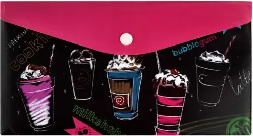 Папка для документов. КОКТЕЙЛИ. Размер: 26x14 см. Материал: полипропилен. Толщина: 180 мкм. Количество отделений: 1. Тип застёжки: кнопка. Цвет - черный. Отделка: УФ-печать.