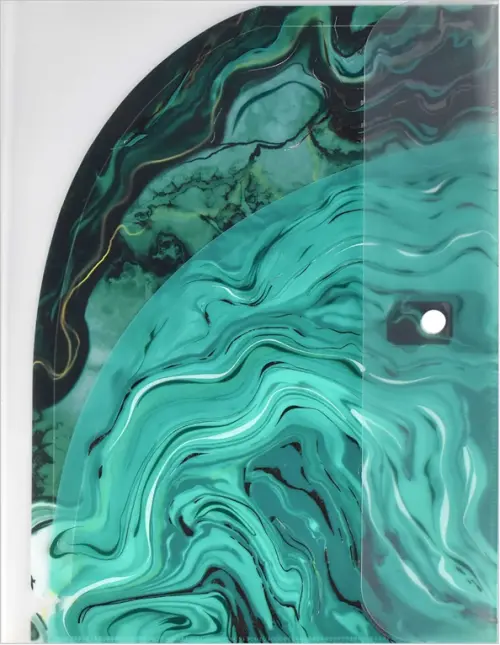 Папка для документов. МАЛАХИТ. Формат А4. Размер: 23x32 см. Материал: полипропилен. Толщина: 200 мкм. Количество отделений: 2. Тип застёжки: кнопка. Цвет - зеленый. Отделка: печать фольгой, УФ-печать. Особенности: внутренние папки-уголки.