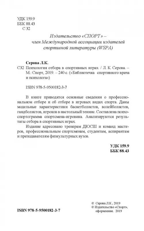 Если вы обнаружили ошибку в описании товара «Психология отбора в спортивных играх» (авторы: Серова Лидия Константиновна), то выделите её мышкой и нажмите Ctrl+Enter. Спасибо, что помогаете нам стать лучше!