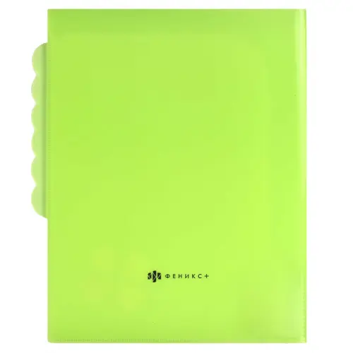Папка для документов. КЛЕВЕР. Формат А4. Размер: 23.9x30.9 см. Материал: полипропилен. Толщина: 180 мкм. Количество отделений: 6. Цвет - зеленый. Отделка: вырубка, тиснение фольгой, УФ-печать. Особенности: 6 впаянных уголков, одноцветная печать.